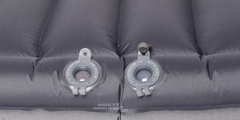 - Два плоских клапана из мягкого полиуретана(один для надувания коврика, другой для сдувания) гарантируют простоту использования. Прочные клапаны не мешаются и защищены от случайного открытия.